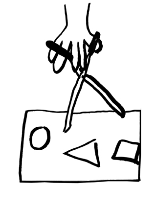 3. Apply color to squares, circles, triangles, human shapes and stairs found in your 4 sheets of paper