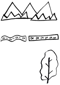- Mahai handi batean, hasteko, jarri mendiak eta ibaia nahi duzun lekuan. Elementu horiek finkoak izan beharko dute, eta ezingo dituzu aldatu gero.