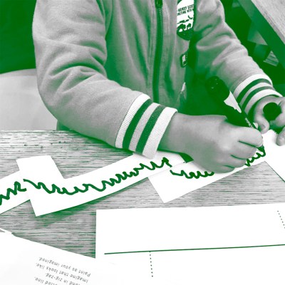 2. Dobla por las líneas discontinuas. Extiende el papel en zig-zag e imagina que se parece a algo.